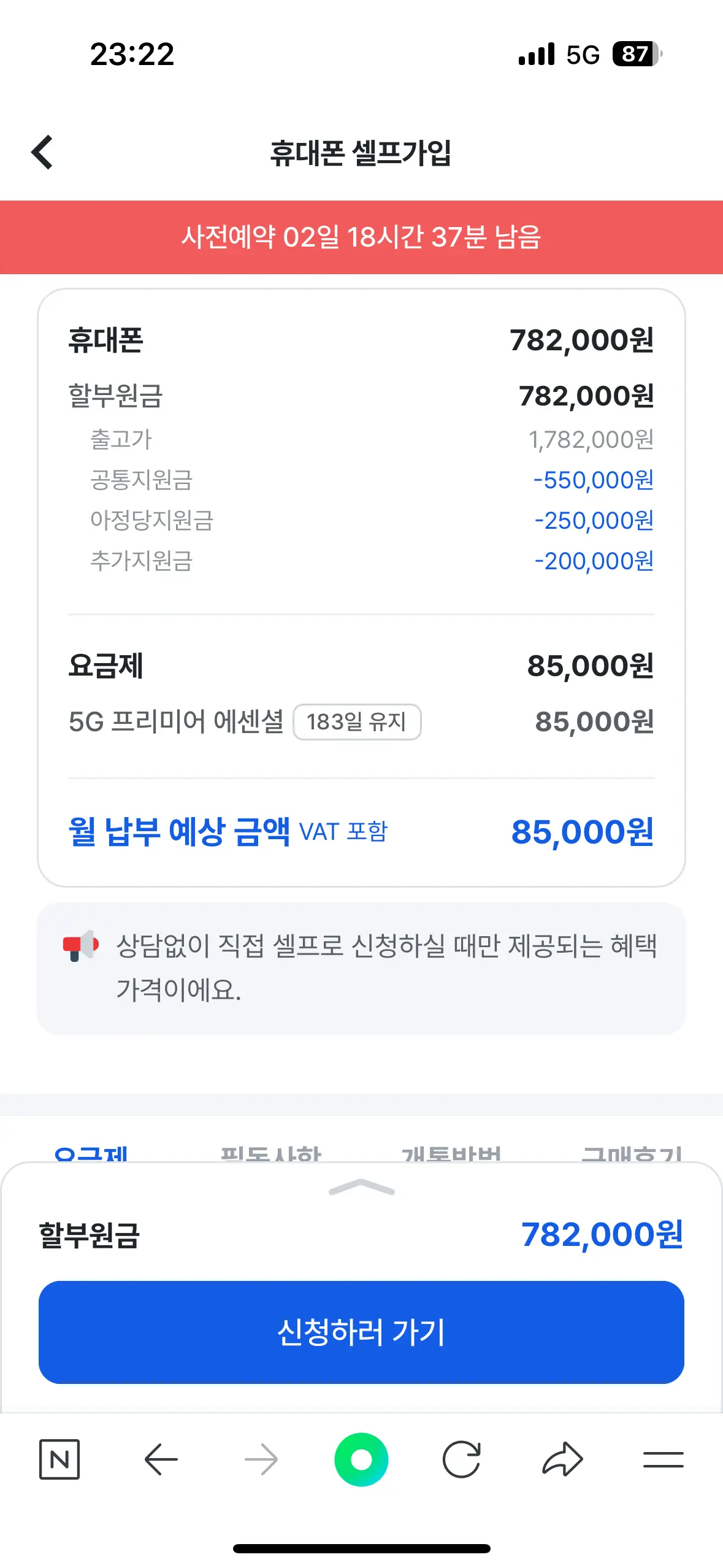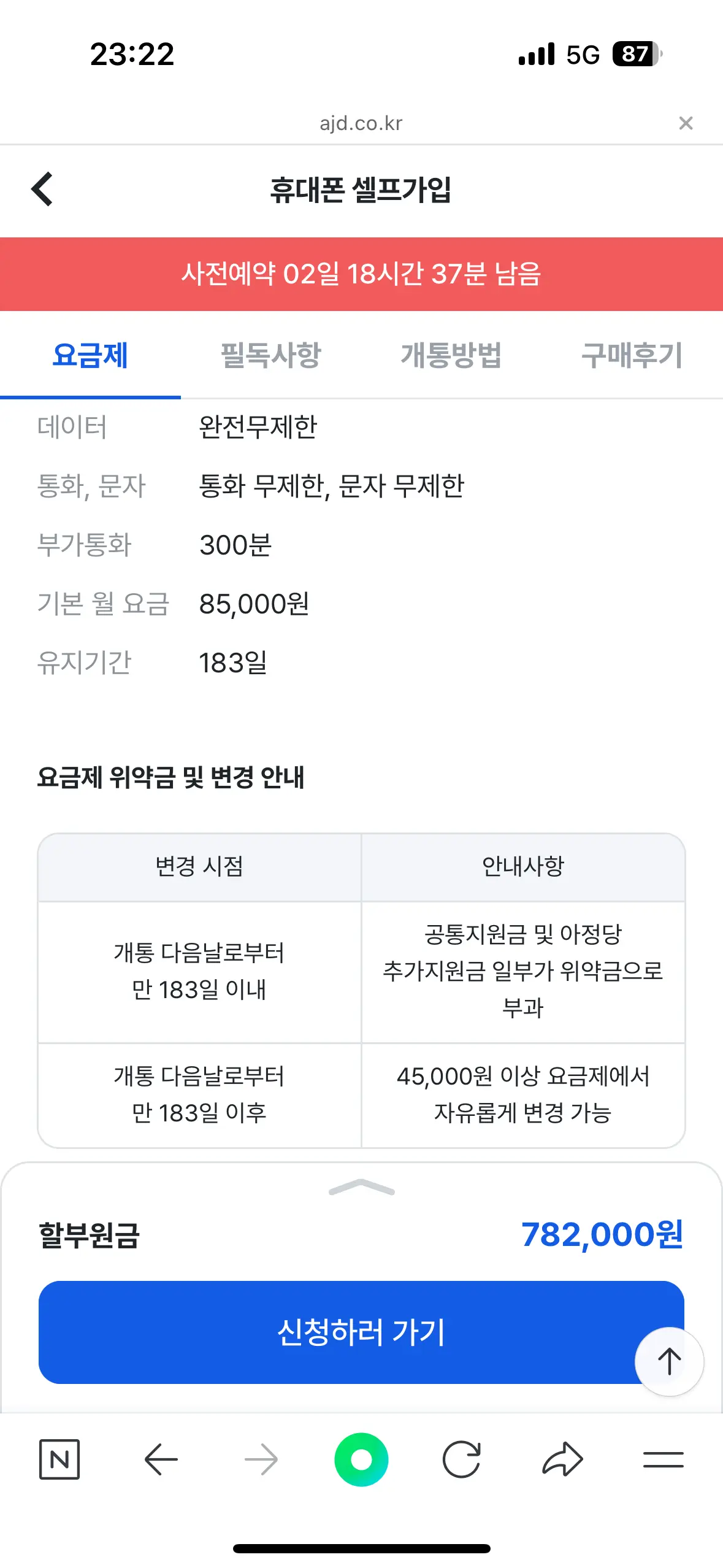 만약 공통지원금으로 선택할 시, 개통일로부터 만 183일이 지난 후 요금제를 해약하게되면