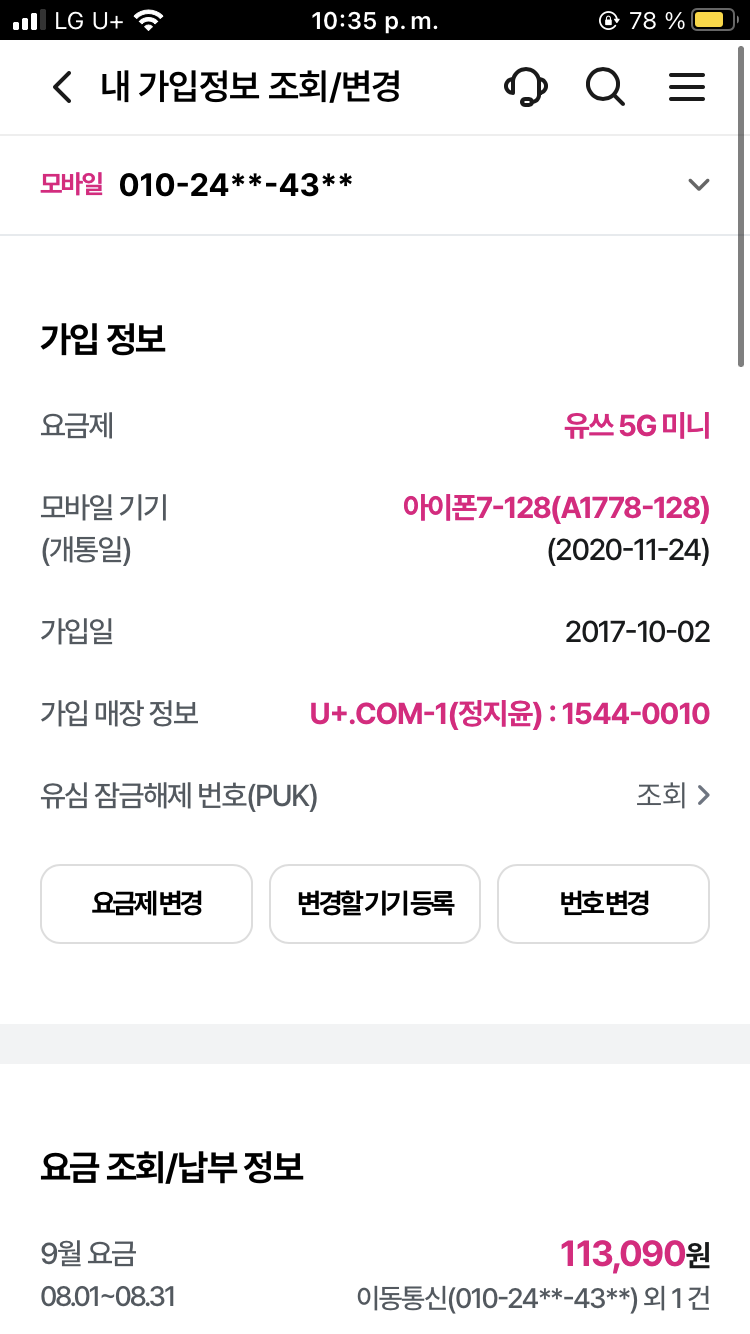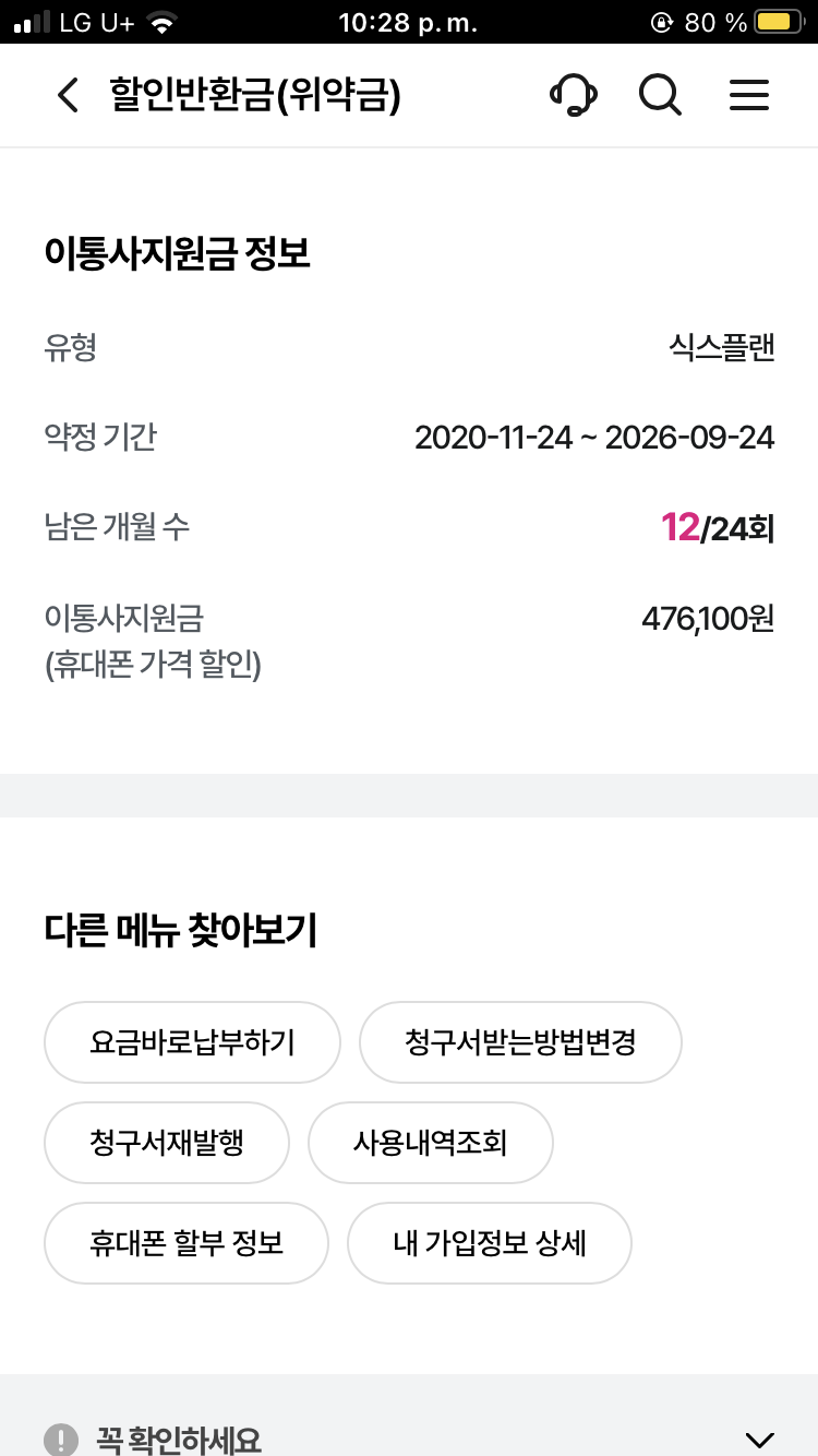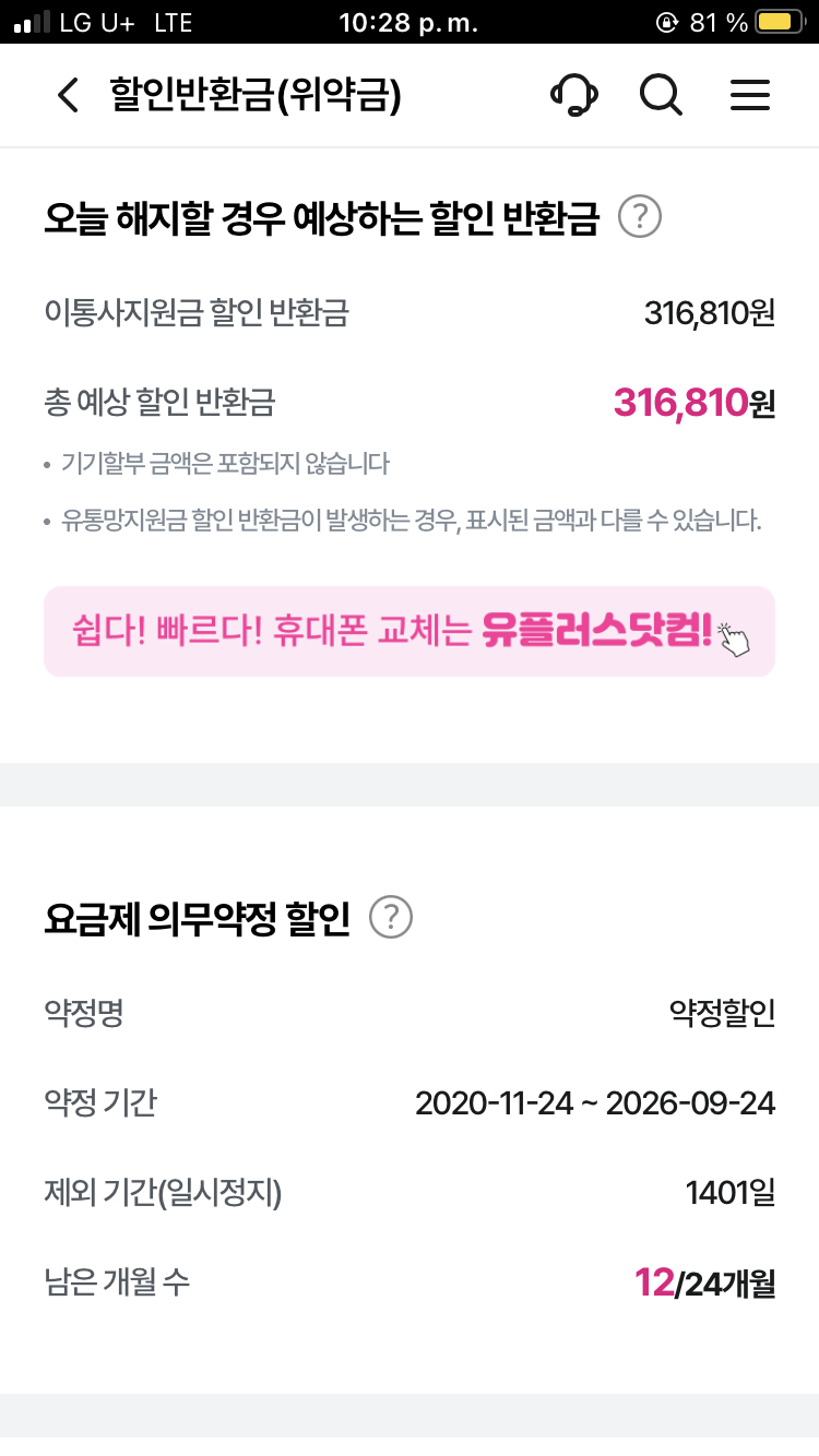 안녕하세요. 다름이 아니라 지금 현재 아이폰 7을 사용하고 있습니다. 중간에 해외에 살다와서 휴대폰 정지로 정지했던 기간은 약정기간에 포함 되지 않아서 현재는 12개월이 남은 상태입니다.