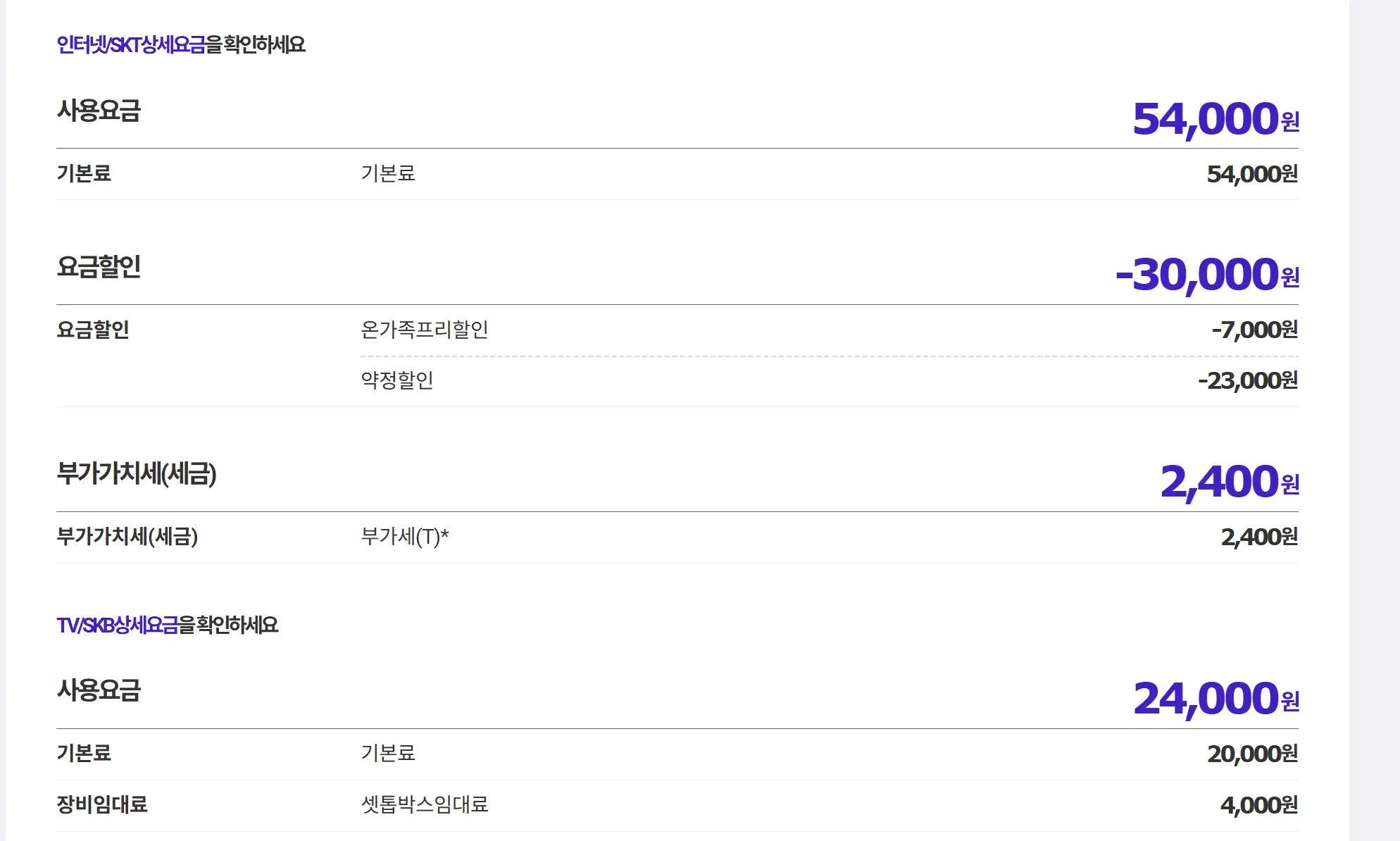 현재: SK - TV, 인터넷 (3년약정 만료) + 남편(명의자) 핸드폰만 결합, 부인 핸드폰은 미결합