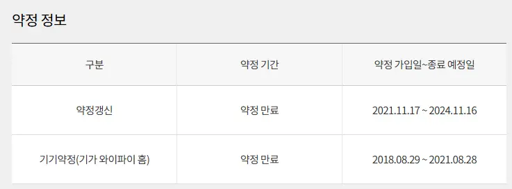 인터넷 : KT베이직 (500mb) / 이용기간 7년