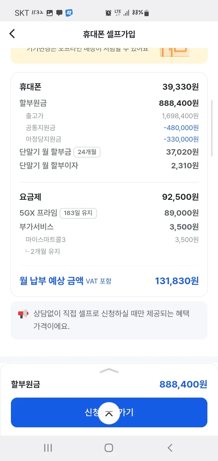 댓글 1관심글 댓글 알림아정당 댓글 복사안녕하세요! 고객님! 아정당 입니다. 셀프가입 진행 시 신청서와 진행 내용이 달라 많이 당황하셨죠 ㅠ.ㅠ 해당 신청서는 통신사 기준으로 작성되기에 먼저 작성해주시면 저희 아정당에서 고객님의 신청내용과 비교하여 다시 아정당 조건으로 진행을 해드리있어서 일단 인증 및 신청서 작성해주셔도 무방합니다! 추가로, 순차적으로 해피콜 연락이 들어가면 한번 더 확인 및 문의주실 때 안내받아 보실 수 있는 점 참고 부탁드립니다! 감사합니다!2025.09.16 17:38