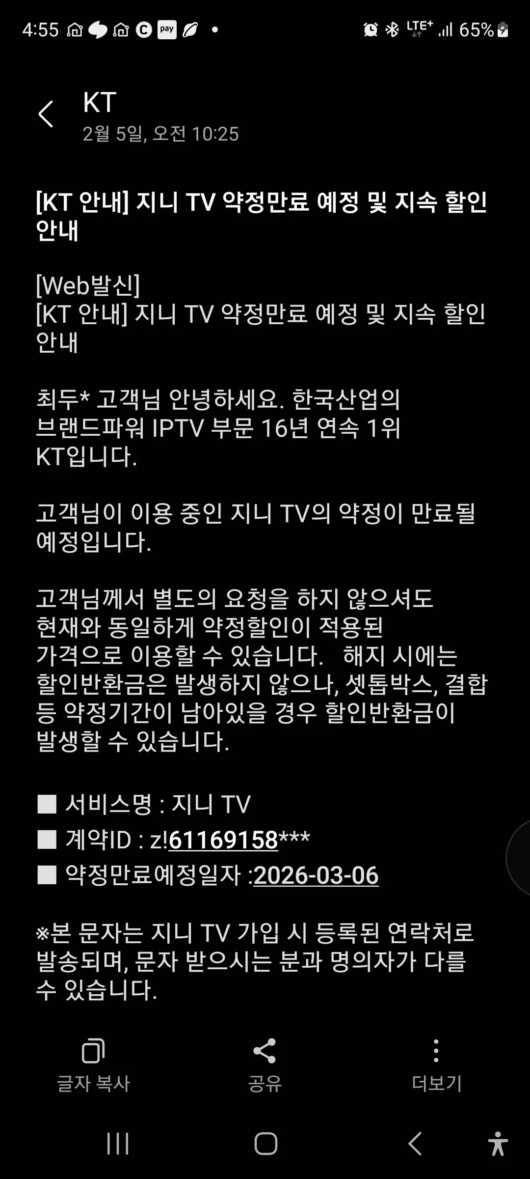 다만, KT 재약정은 아쉽게도 저희 아정당을 통해서는 진행이 불가능하며,