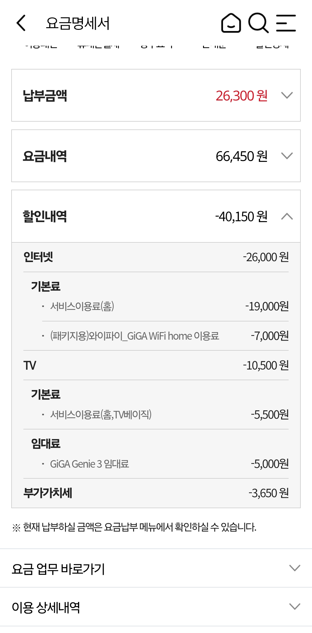 지금 제가 kt에서 쓰고 있으면서 할인 받는 금액 입니다.
