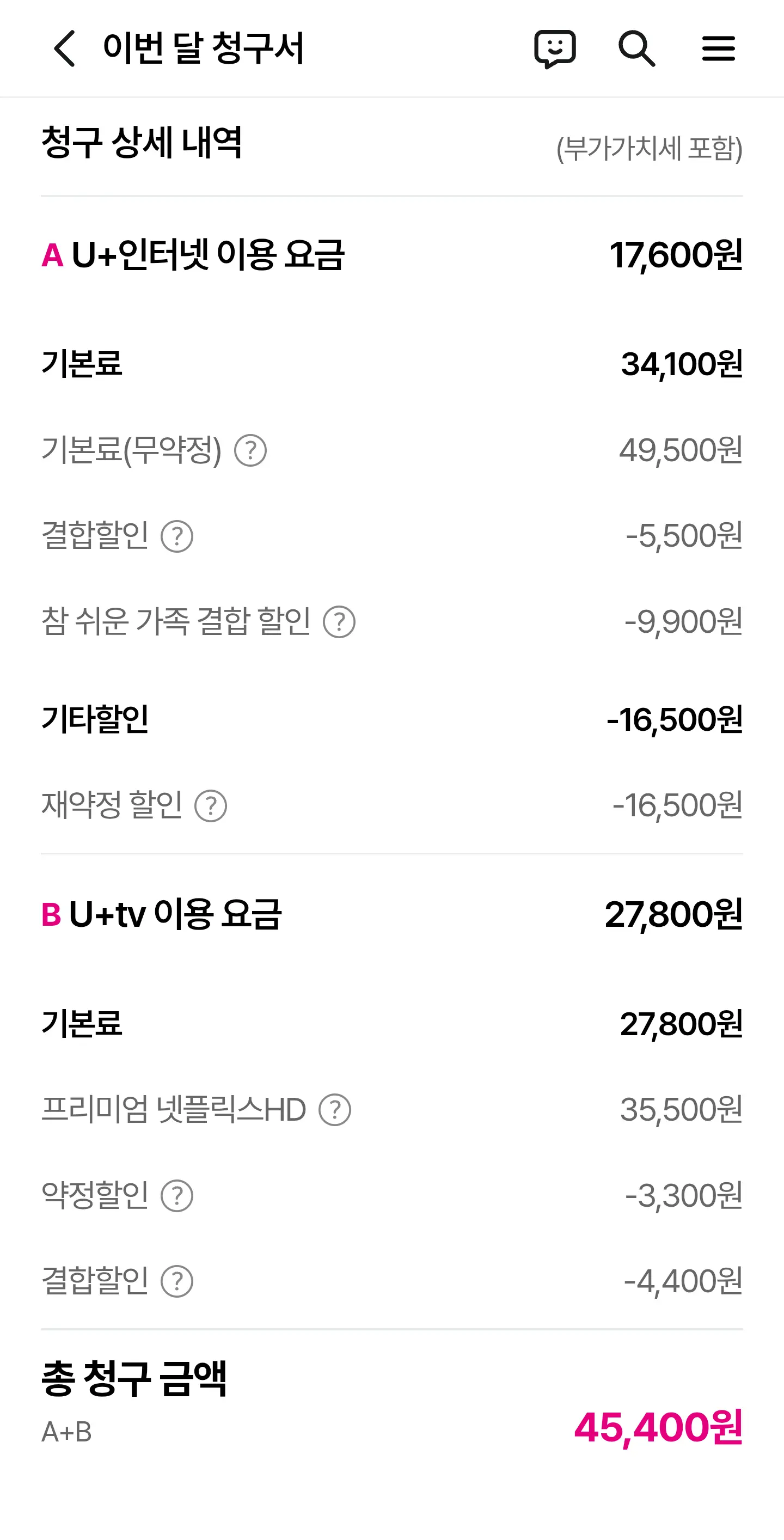 ㅁ 참쉬운 가족 결합할인 : 9,900원