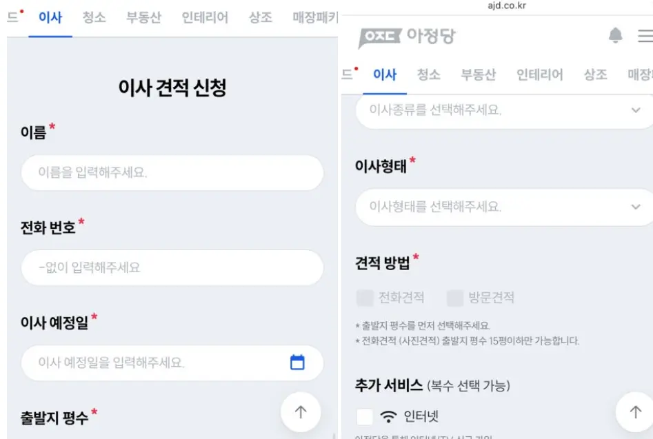 이사는 아정당을 이용했구요!