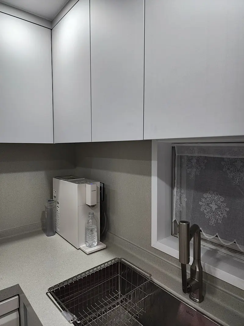 덕분에 싱크대 옆에 딱 예쁘게 자리잡았답니다. 설치 후 간단한 사용 설명까지 친절하게 설명해 주셨습니다.
