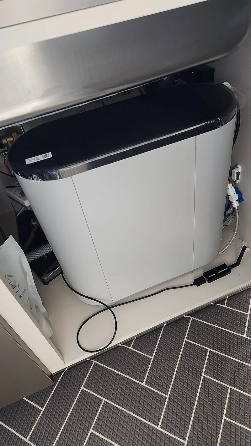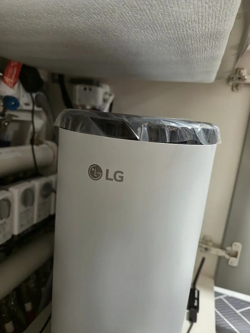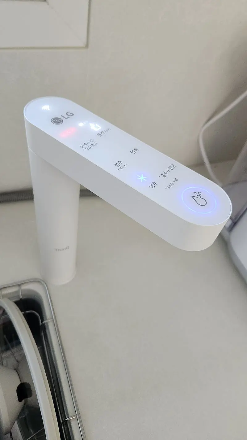 주방이 깔끔한 것을 선호해서 싱크대 위 공간을 차지하는 것이 싫었습니다. 이 제품은 본체가 싱크대 하부장으로 들어가고, 출수구(파우셋)만 노출되어 주방이 훨씬 넓어 보이고 미관상 완벽하게 깔끔한 점이 가장 마음에 들었습니다.