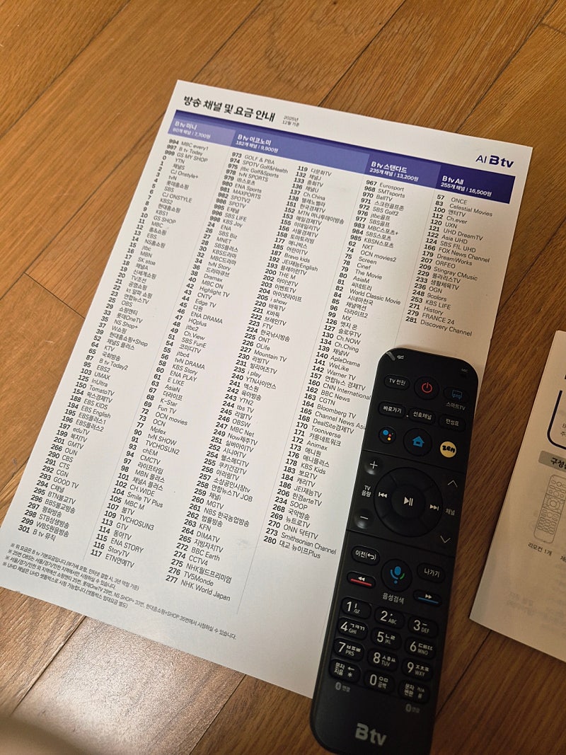 - TV1: Btv 이코노미(182채널) + 스마트3