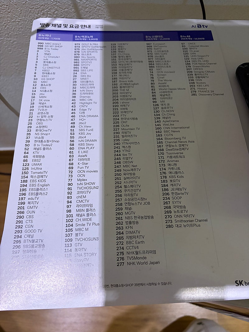 * 요금 상품 : K텔레콤 / 비티비 이코노미 / 스마트3 셋탑 / GIGA WIFI