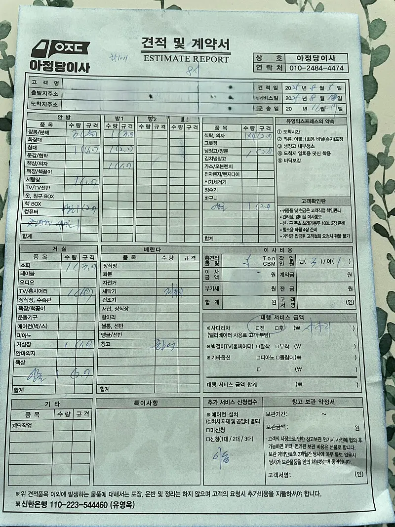 가격비교 꿀팁까진 아니지만 가져갈 짐과 가져가지 않아야할 짐을 명확하게 구분해 두면 좀더 정확하고 추가금없는 견적서를 받아볼 수 있는것 같습니다.