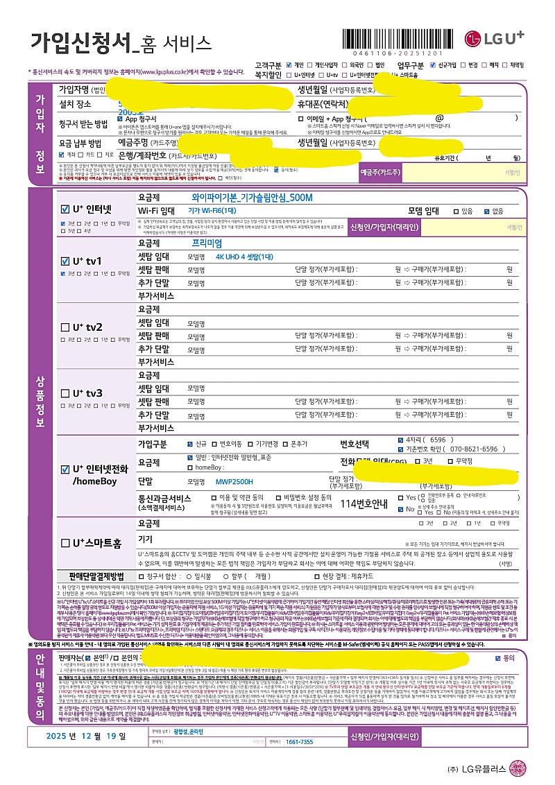 아정당을 통해 신규계약 알아보니 LGU+가 제일 계약 조건이 좋아 선택하게 됐습니다.