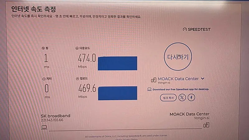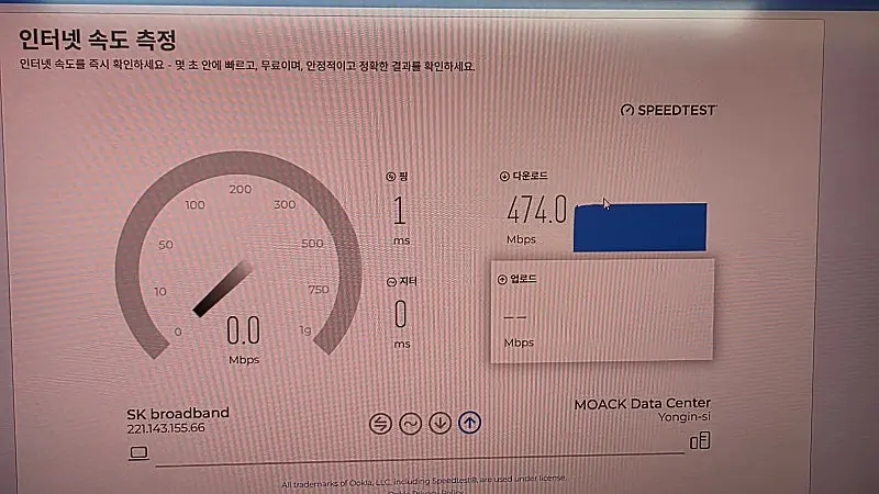 인터넷 바꾸고 속도 측정해보니 빠르게 잘 나오고 무엇보다 체감이 확 됩니다.