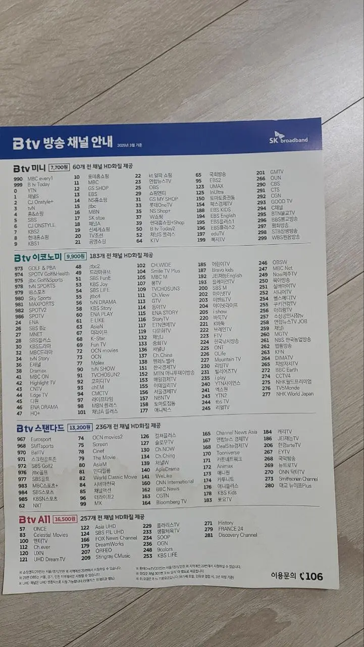 * 요금 상품 : sk인터넷 100mbps/ 스마트3(182채널) / UHD4셋톱 / GIGA WIFI