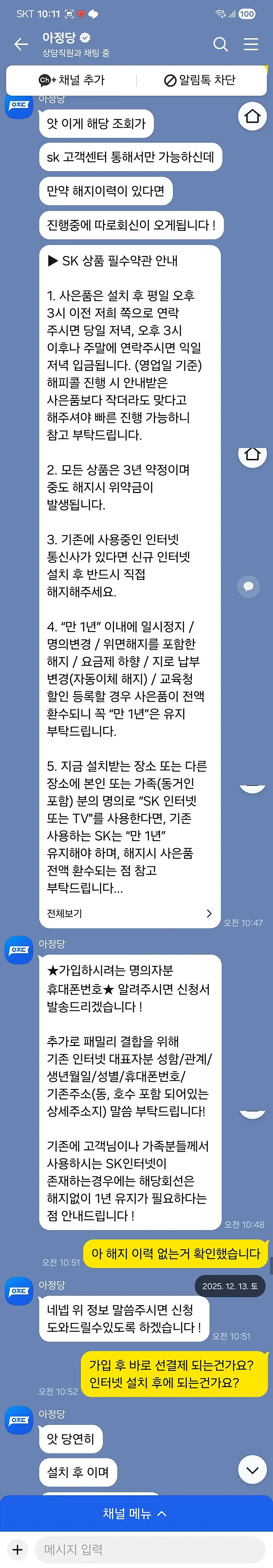처음 상담 시 인터넷 요금과 설치 방식에 대해 차분하게 설명해주셔서 이해하기 쉬웠습니다.