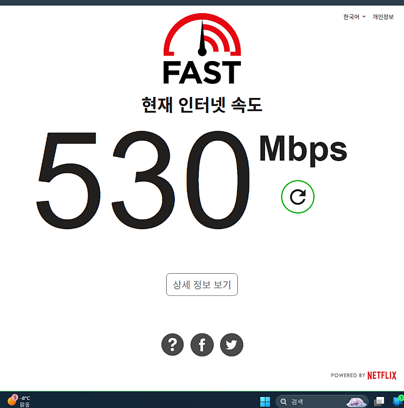 설치 직후 속도를 측정해봤는데 전반적으로 안정적으로 나와서 만족하고 있습니다.