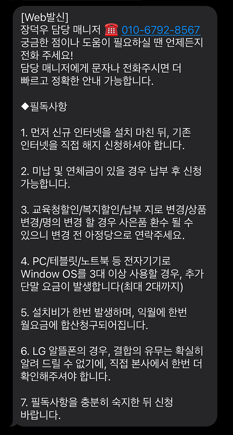 2. 인터넷변경 및 개통가입절차(최소 3줄 이상)