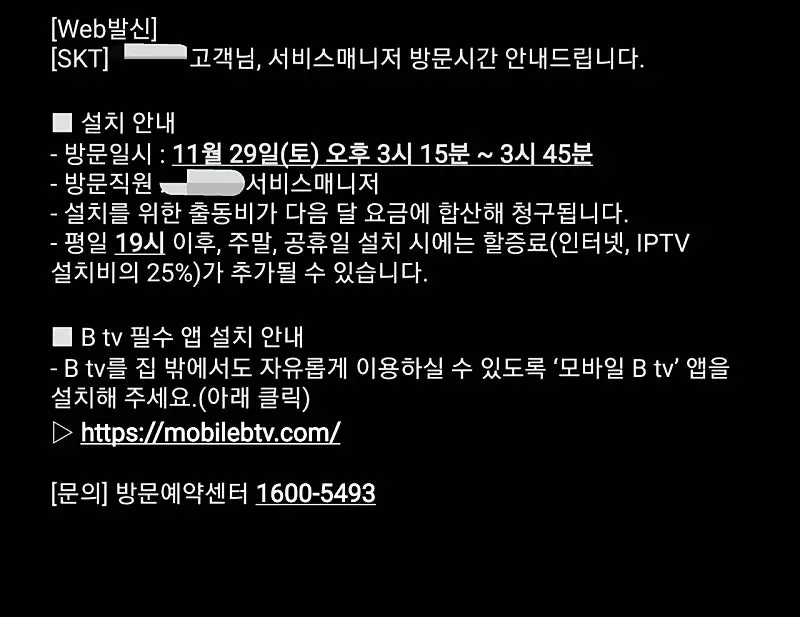 * 개통 일자 : ex) 2025년 12월 14일