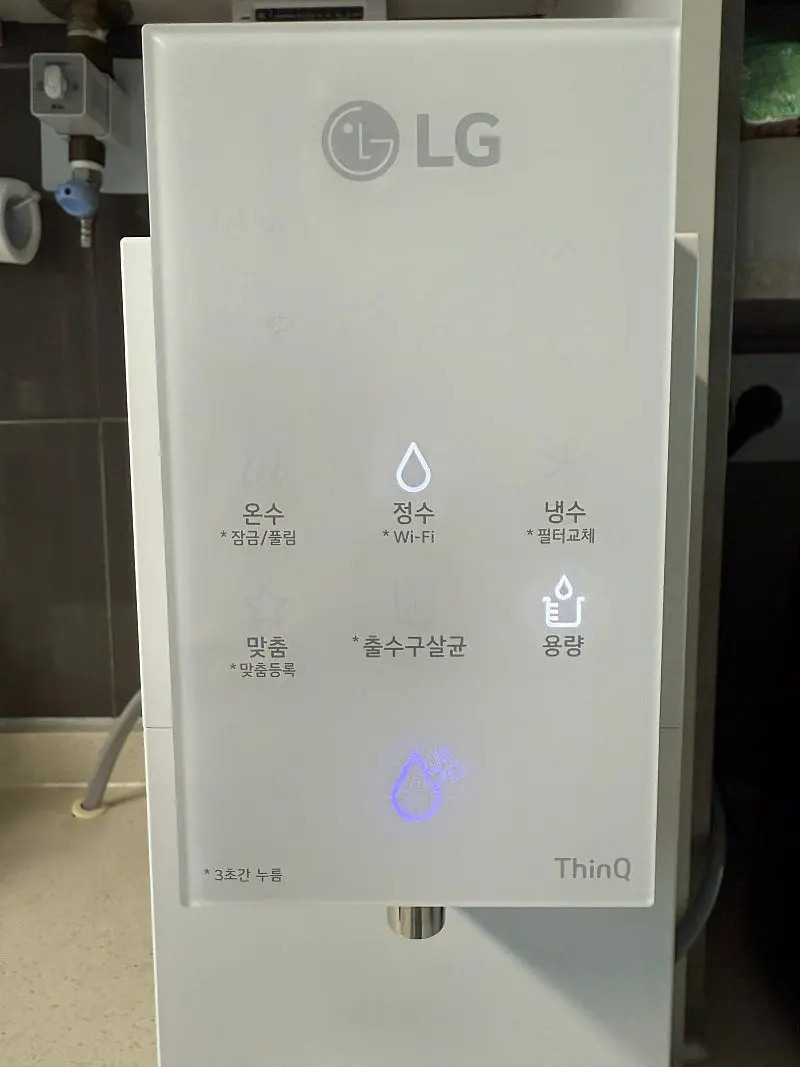 제품은 lg제품이 자동 uv살균과 출수구살균 기능이 있고 자가필터관리도 편리하여 선택하게 되었습니다.