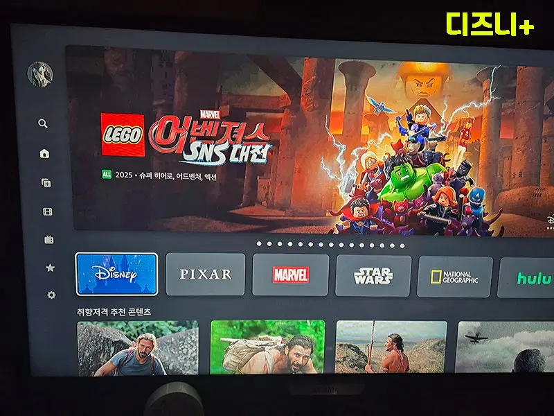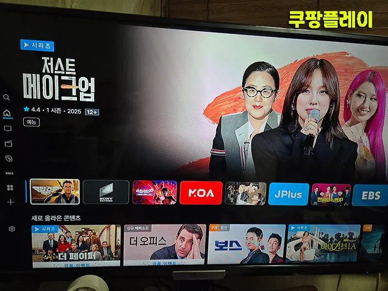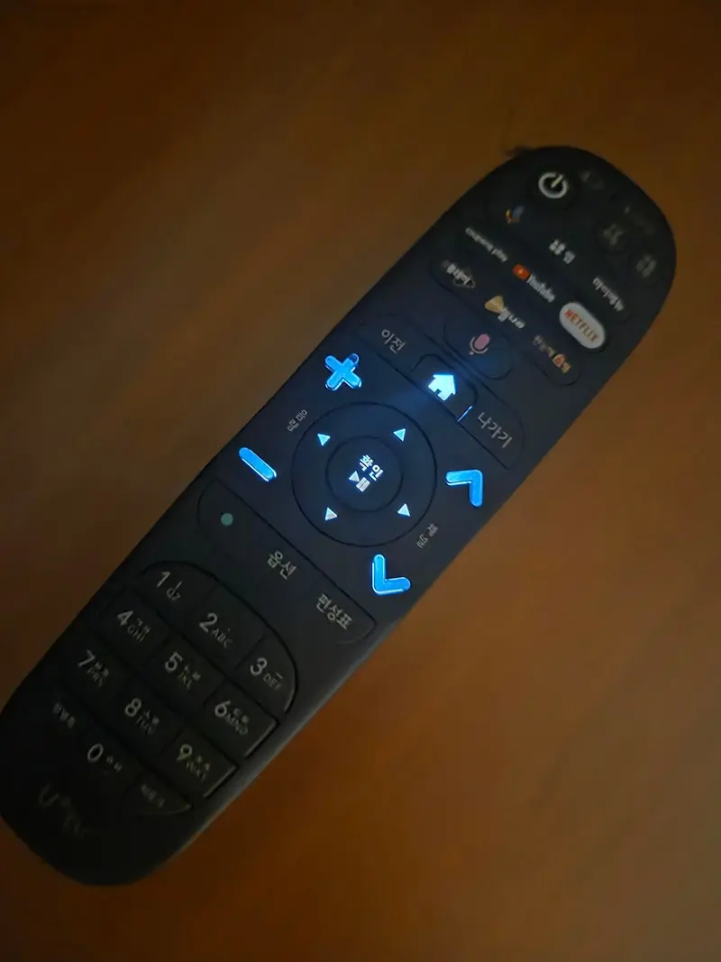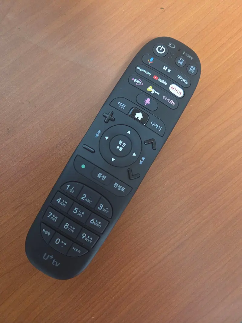 리모콘에는 쿠팡플레이, 유튜브, 넷플릭스, 유플레이, 아이들나라 퀵런치 버튼이 있는데 반응이 좀 느린게 아쉽습니다.