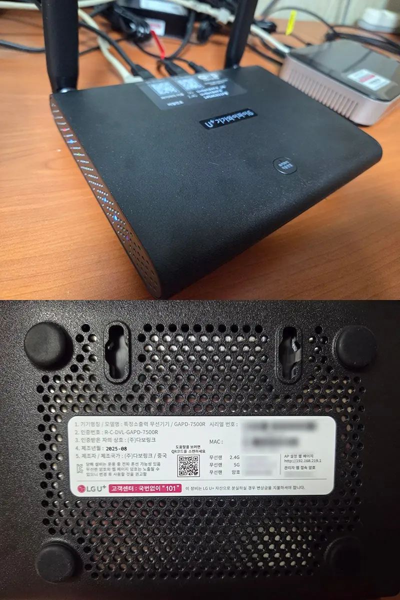 기존 ASUS 공유기에 붙어 있어서 이걸 계속 써야하기 때문에 유플러스 공유기로 옮기지 않고