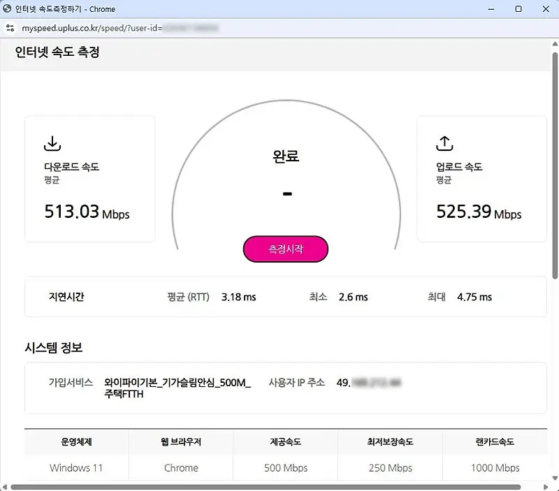 가입한 상품은 유플러스 500M 기가슬림이며 유비쿼스의 C504L