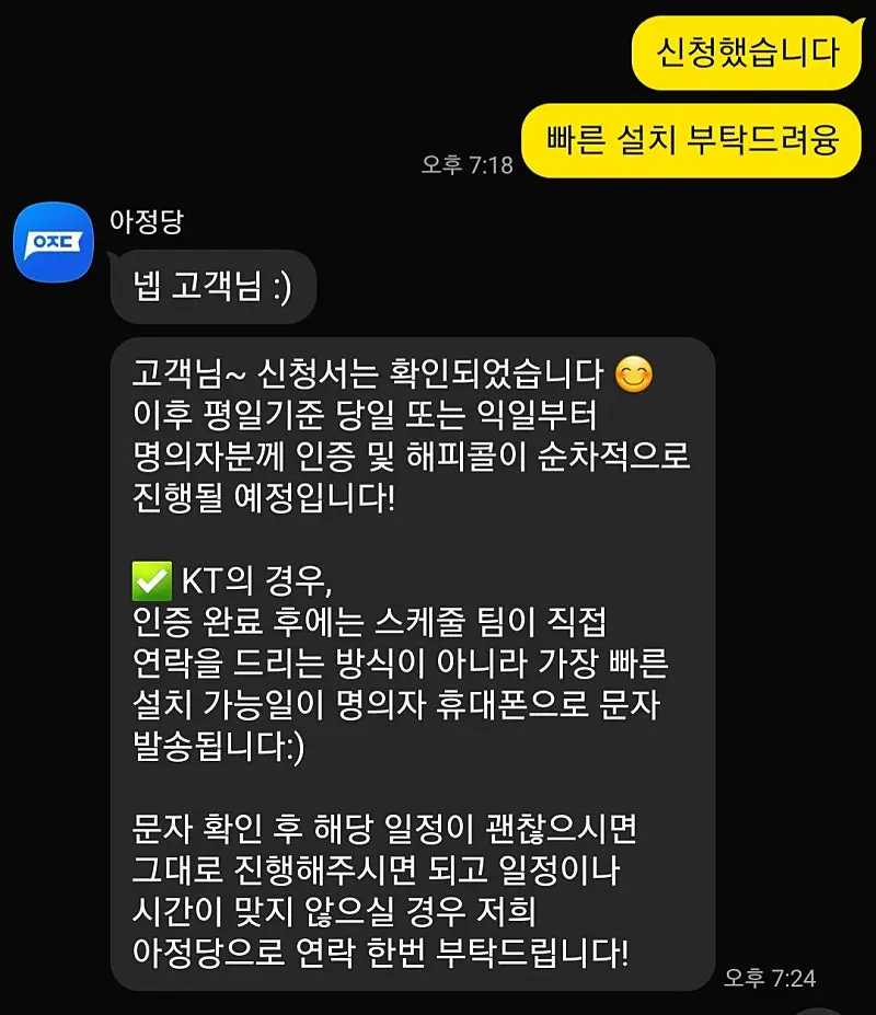 인터넷 설치는 친절하게 가장 빠른 날짜로 예약을 잡아줬습니다.