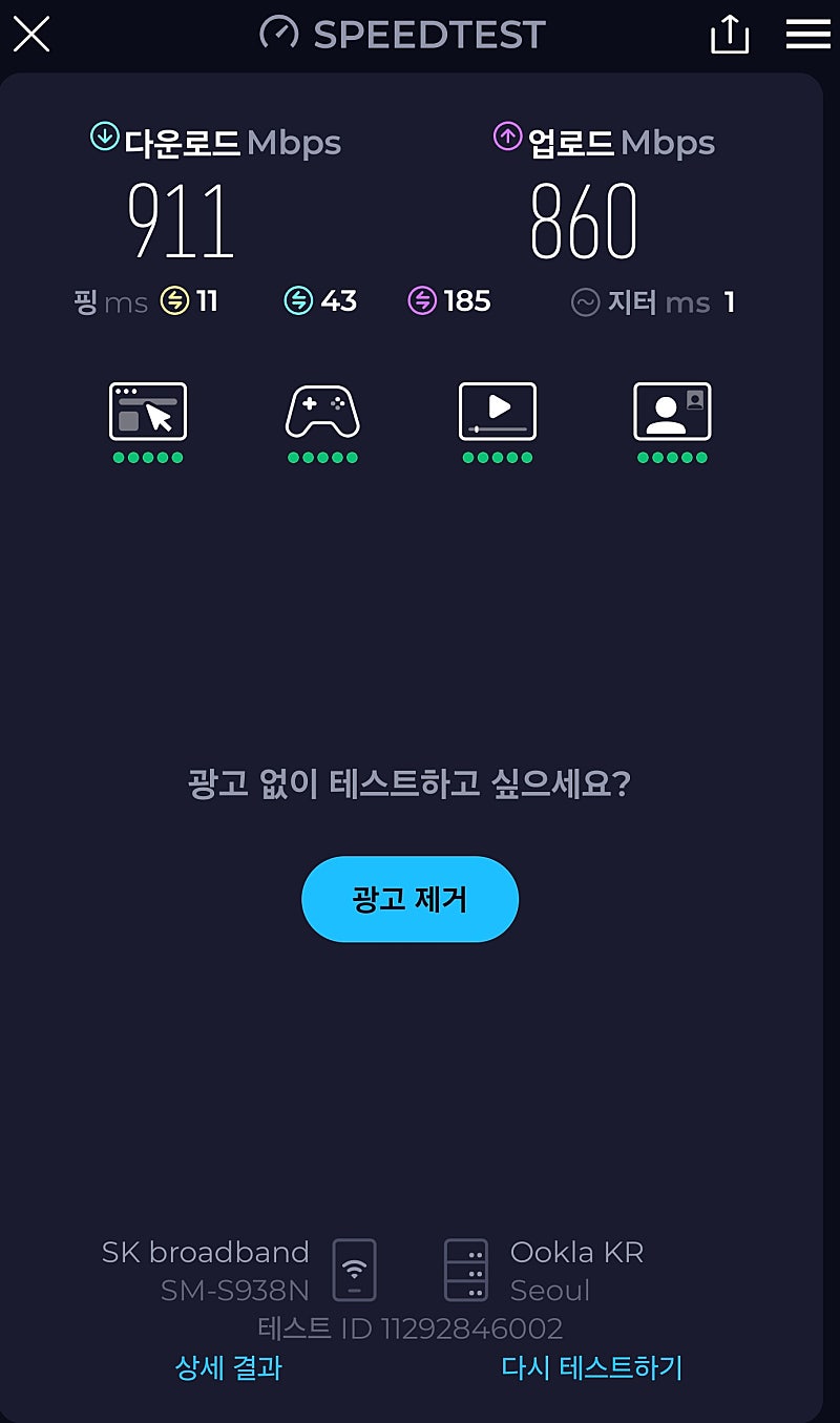 방 구석구석 끊김 없이 속도가 아주 시원시원하게 잘 나오네요.