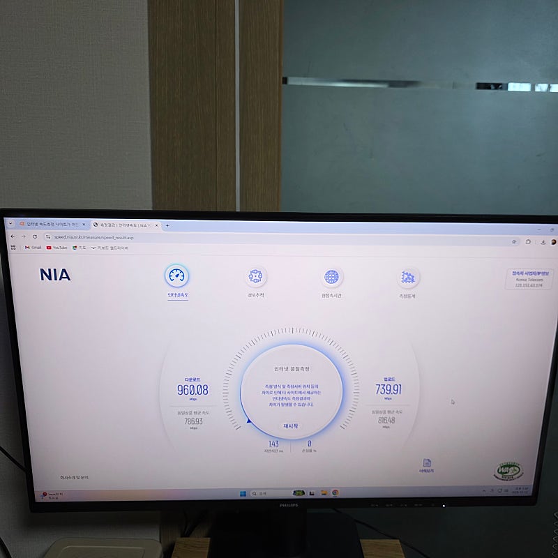 인터넷 속도의 경우에도 사진처럼 빠르게 나올 수 있었습니다