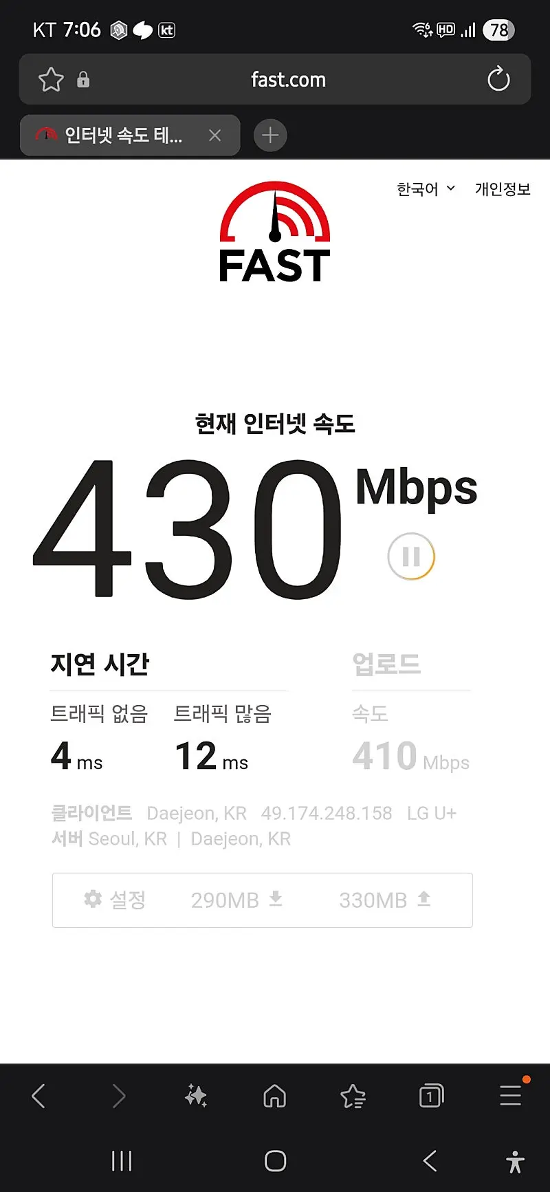 인터넷 속도도 광고처럼 빠르고 안정적이라 처음부터 끊김 없이 잘 작동하더라구요.