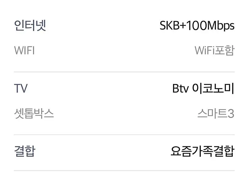 그중에서 SK 인터넷 + TV를 선택하게 된 가장 큰 이유는 휴대폰이 SKT라 결합이 가능했기 때문입니다.