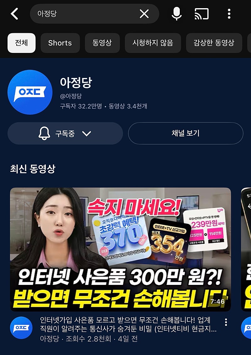 이 부분이 아정당 인터넷의 가장 큰 장점이라고 생각합니다.