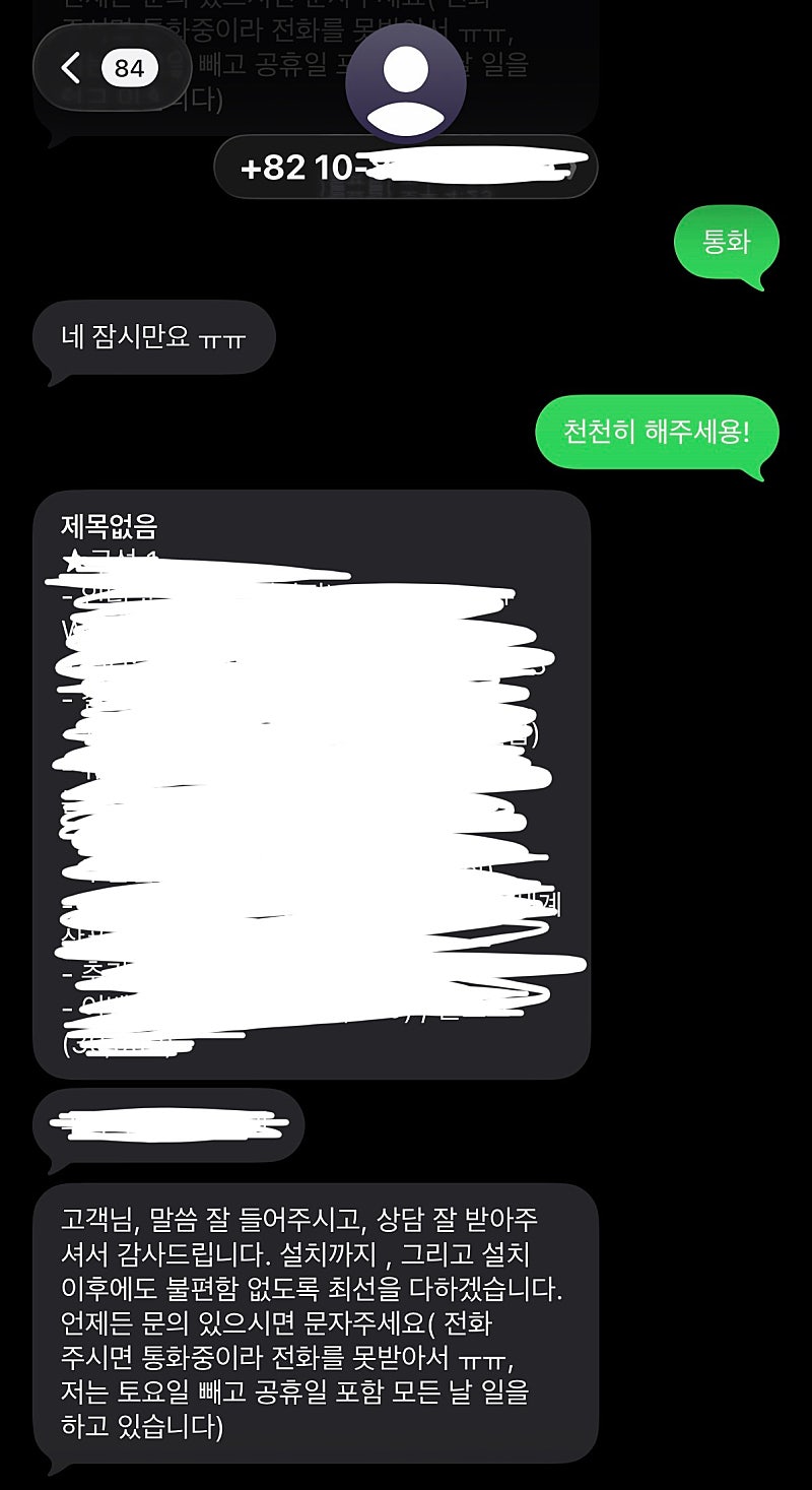 설치 일정 조율이나 궁금한 점도 문자나 전화로 빠르게 해결할 수 있어서 답답함이 전혀 없었어요.