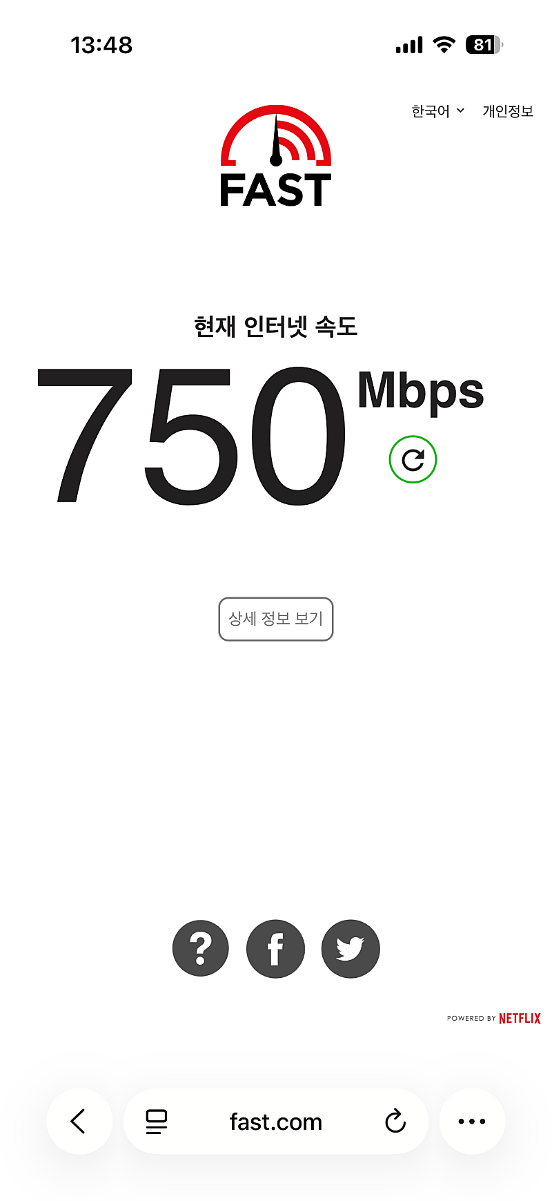 - 우선 이사 전 거주지에서의 KT 인터넷은 100 Mbps 수준으로 너무 느렸었는데, 방금 설치한 LG 1 Gbps 는 유선에서는 거의 1 Gbps 가 대칭형으로 잘 나왔습니다. (910 Mbps 수준), 무선에서도 750 Mbps 가 나와 상당히 빠른 인터넷 속도를 체감할 수 있었습니다.