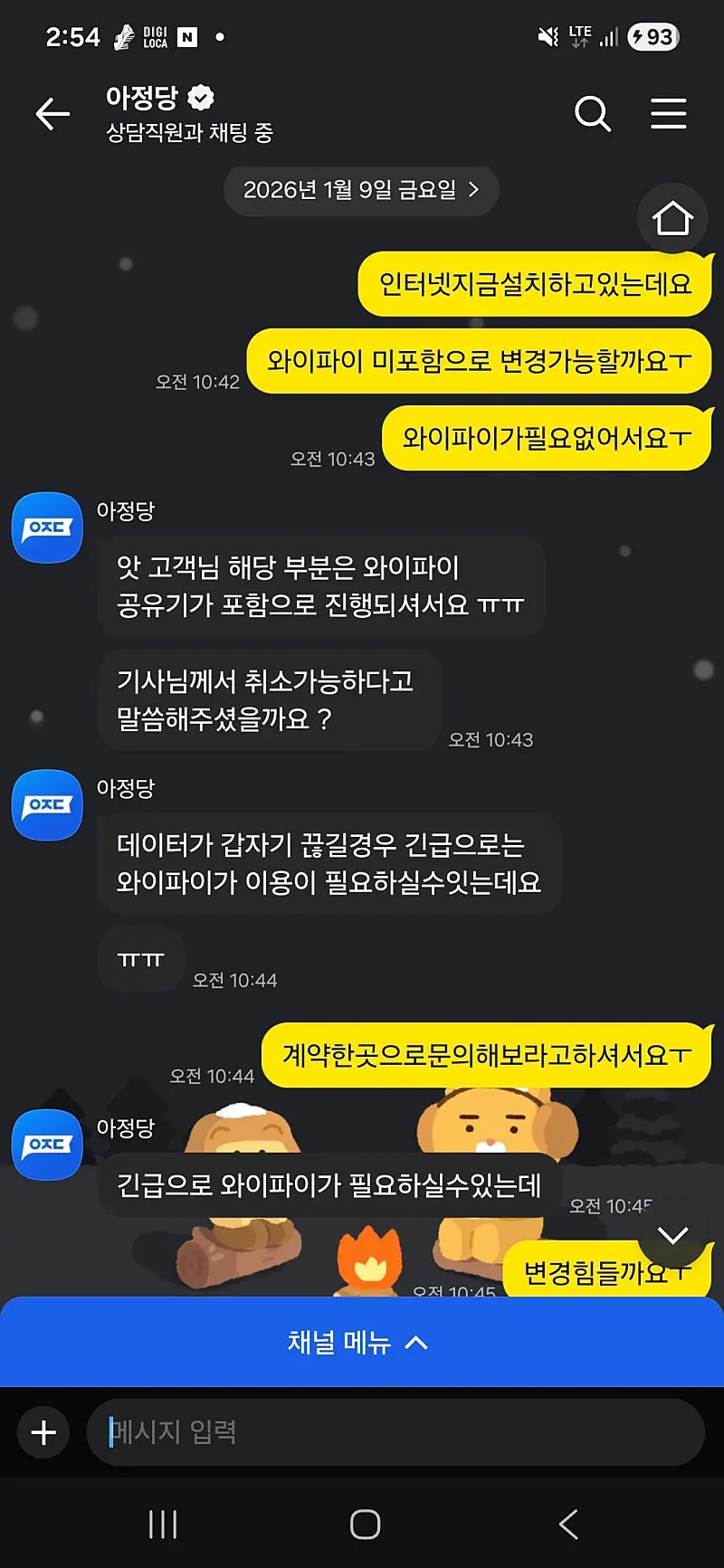 그리고 wifi 포함에서 미포함으로 급작스럽게 변경하게 되었는데 친절히 잘 바꿔주셔서 너무 감사했습니다.