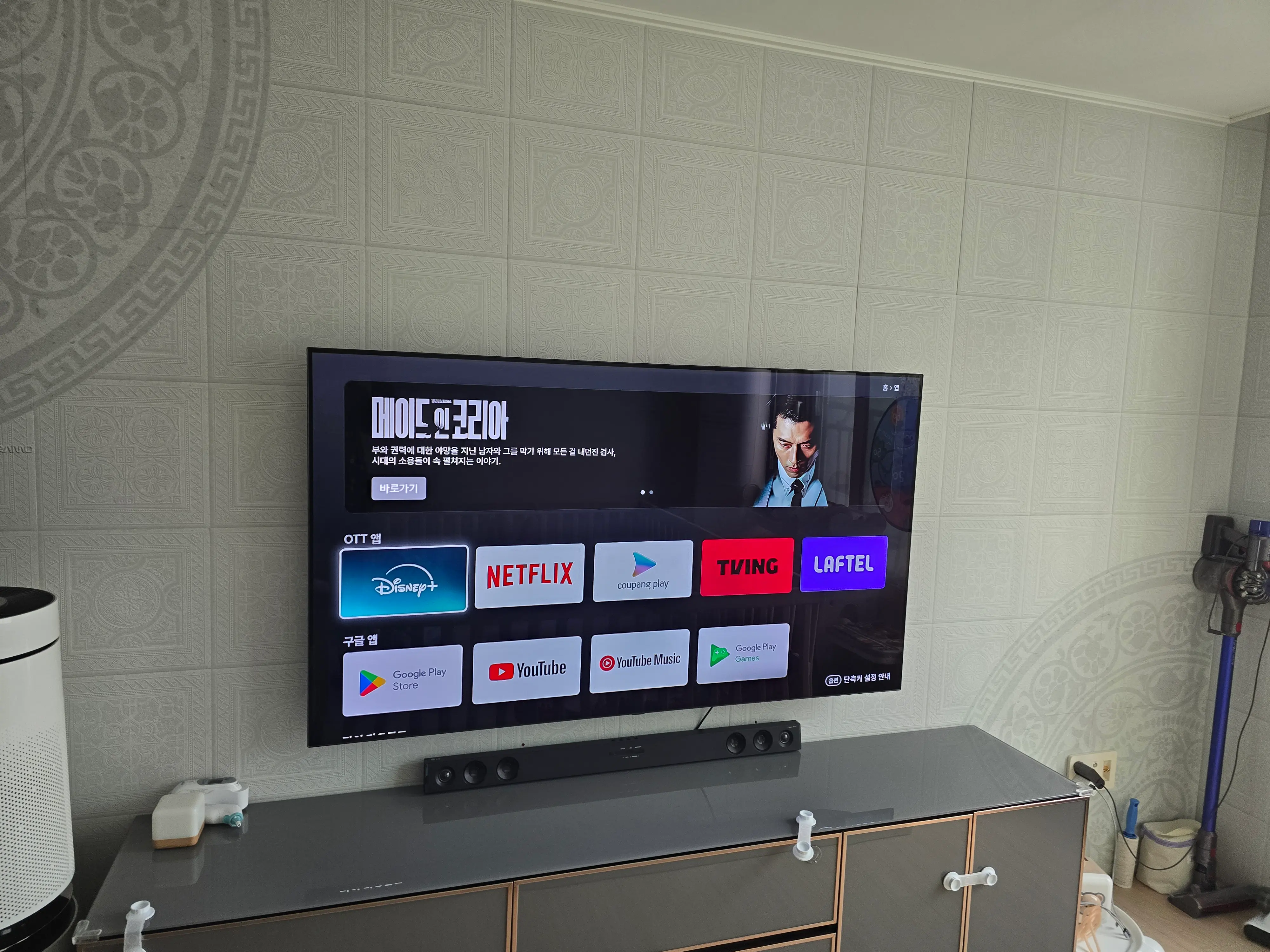 벽걸이TV뒤에 깔끔하게 설치해주셨구요