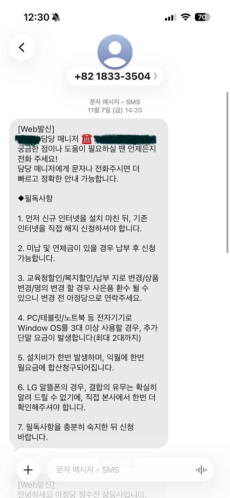 접수가 완료되면 개통하려는 통신사에서 한 번 더 체크를 하고 제가 선택한 날짜에 설치 기사님께서 방문 해주셨습니다