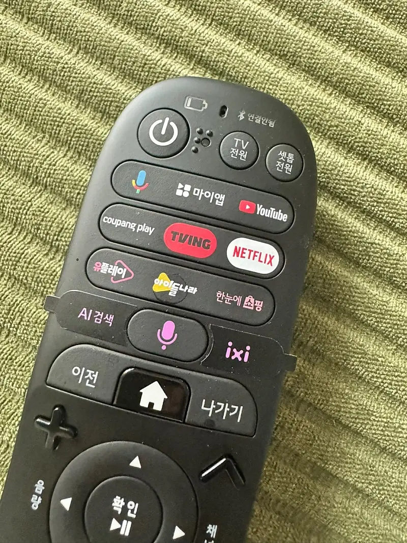 특히 리모콘에 앱(넷플릭스, 쿠팡플레이, 티빙, 유튜브 등)이 너무나도 편리하고, 가끔 스마트TV의 OTT 앱이 잘 작동하지 않을때에, 이 리모콘에 앱을 누르면 셋탑박스에 설치된 앱이 구동되는 방식인데 이 앱들이 안정성이 더 높습니다. 정말 추천해요!