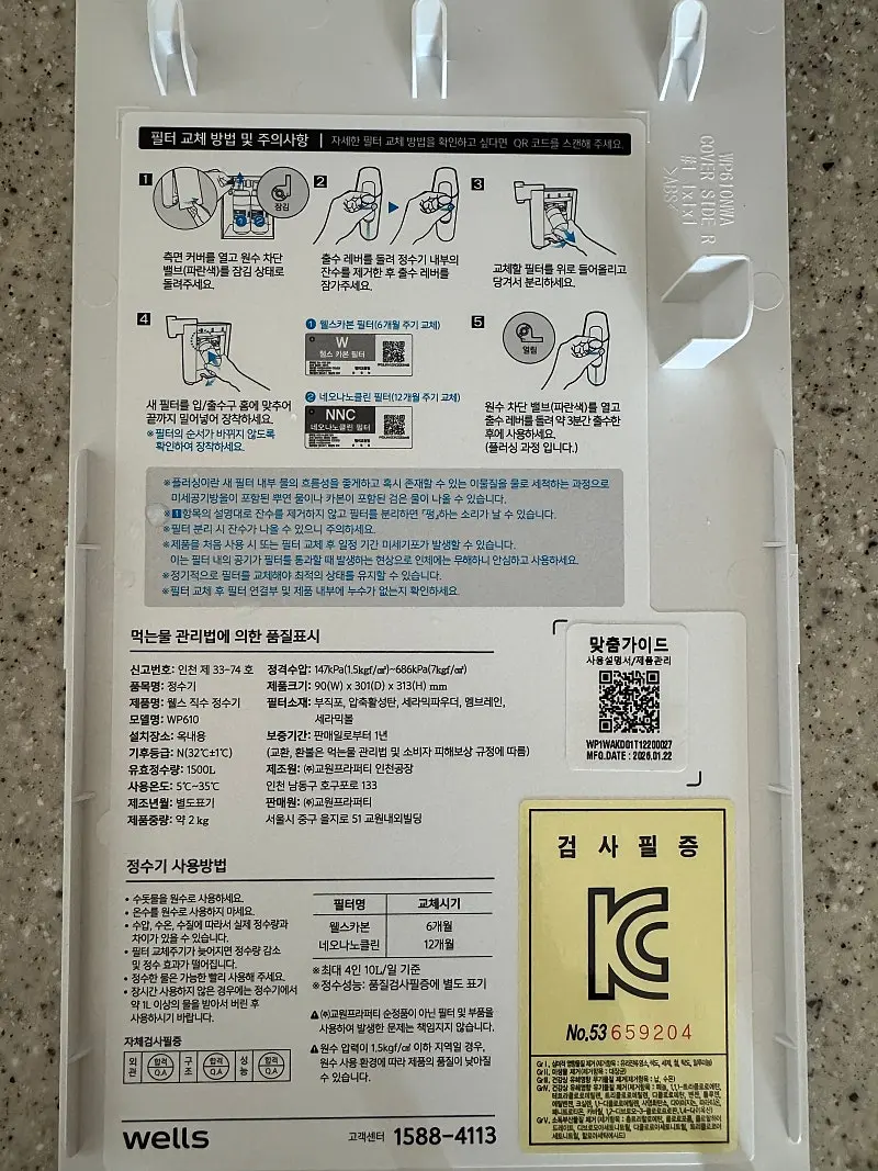 * 렌탈 상품 (브랜드/제품명/모델명) : 교원 웰스 직수정수기
