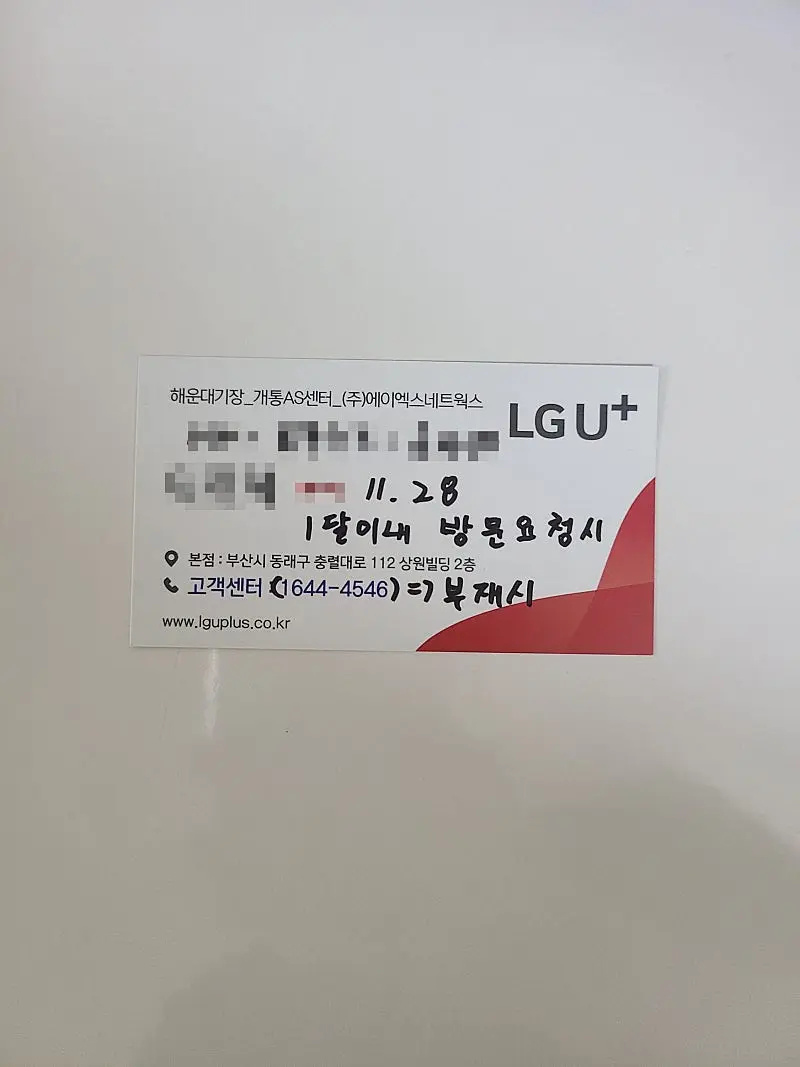 - 기사님께서 문제 생기면 한 달 내에 무료로 달려오신다고 명함 남겨주셨습니다.