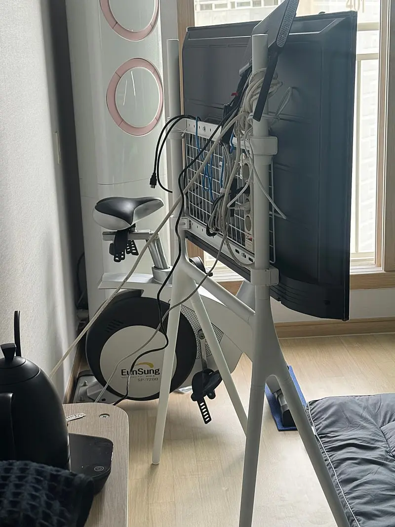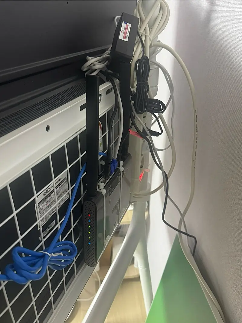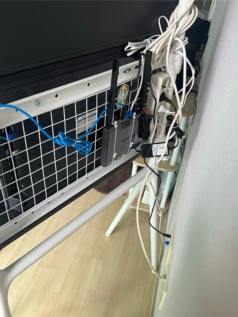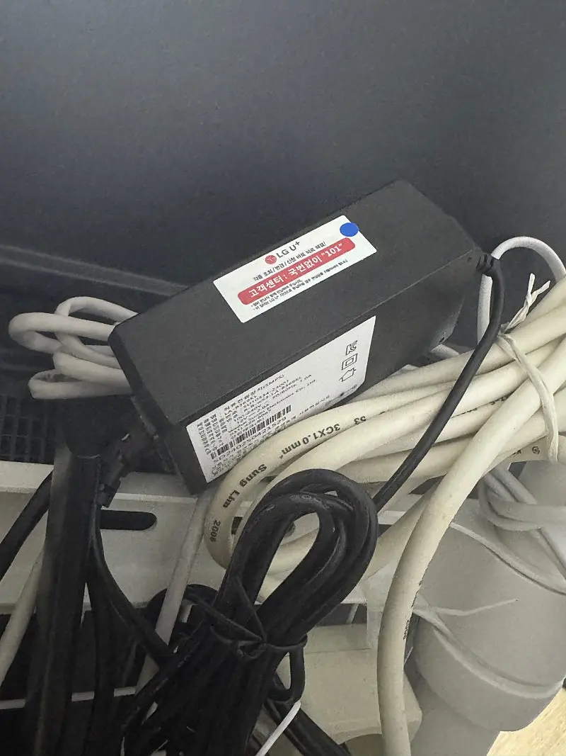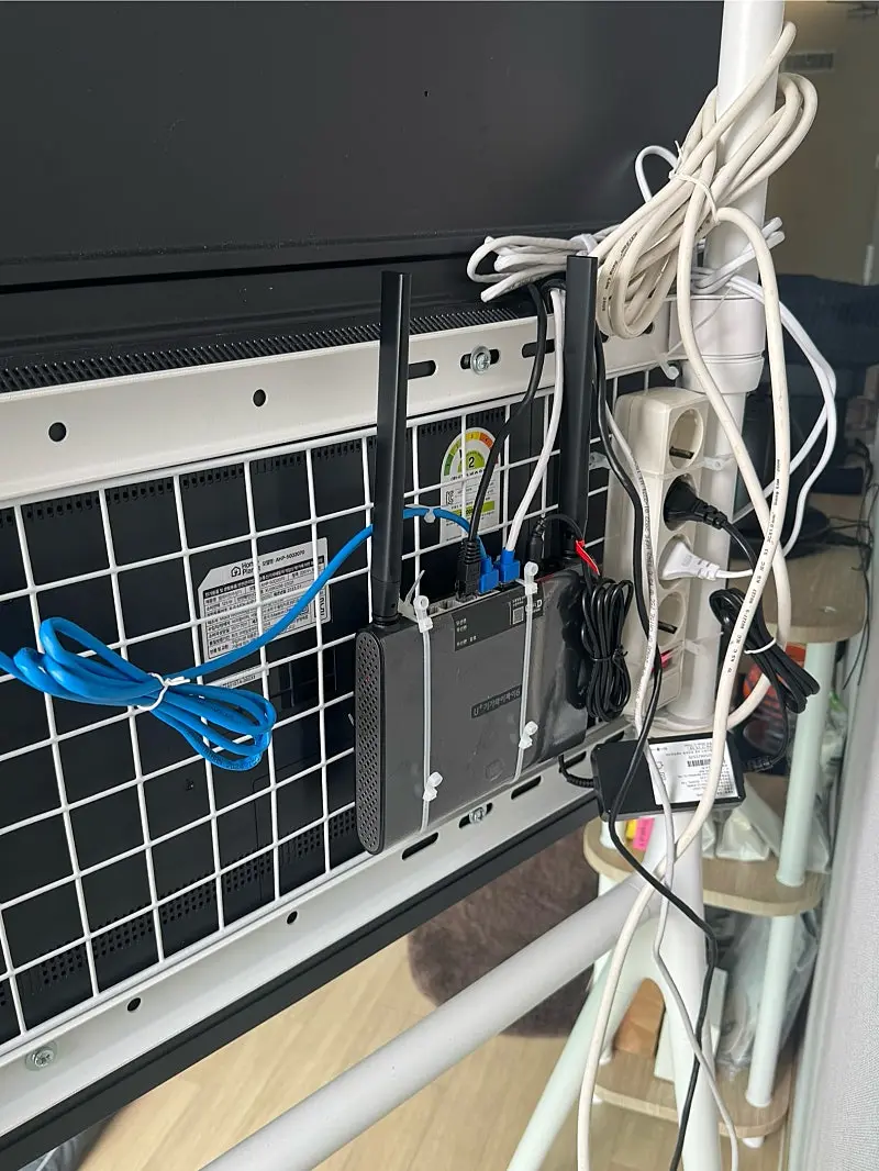 와이파이 공유기와 여러가지 선들을 깔끔하게 티비 뒷쪽에 정리해두니 훨씬 좋아요.