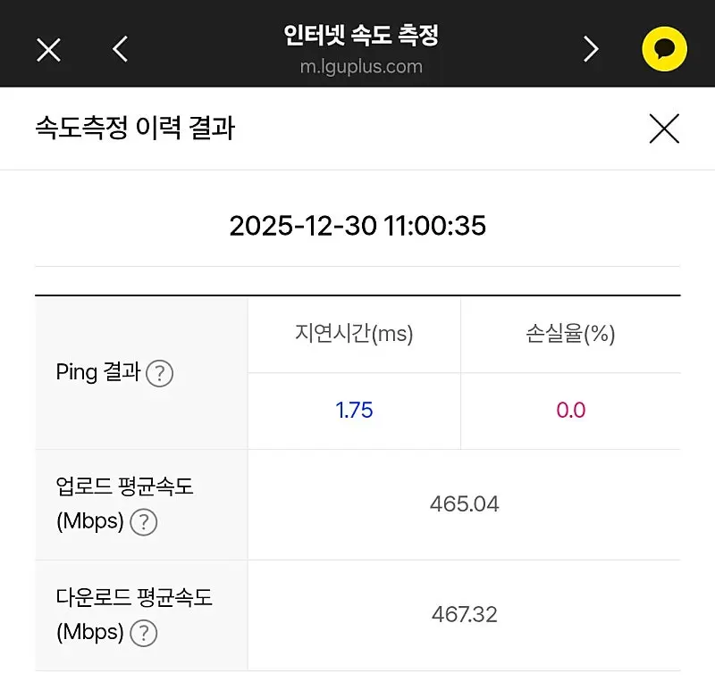 1️⃣ 인터넷 속도 측정 결과 화면