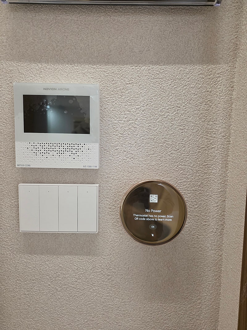 SK 인터넷 설치 후 통신 연결한 벽스위치, 온도조절기, 환기장치 모습