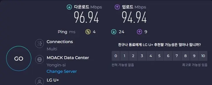 * 요금 상품 : LG U+ 인터넷 / 와이파이기본_광랜안심 100M / GIGA WIFI