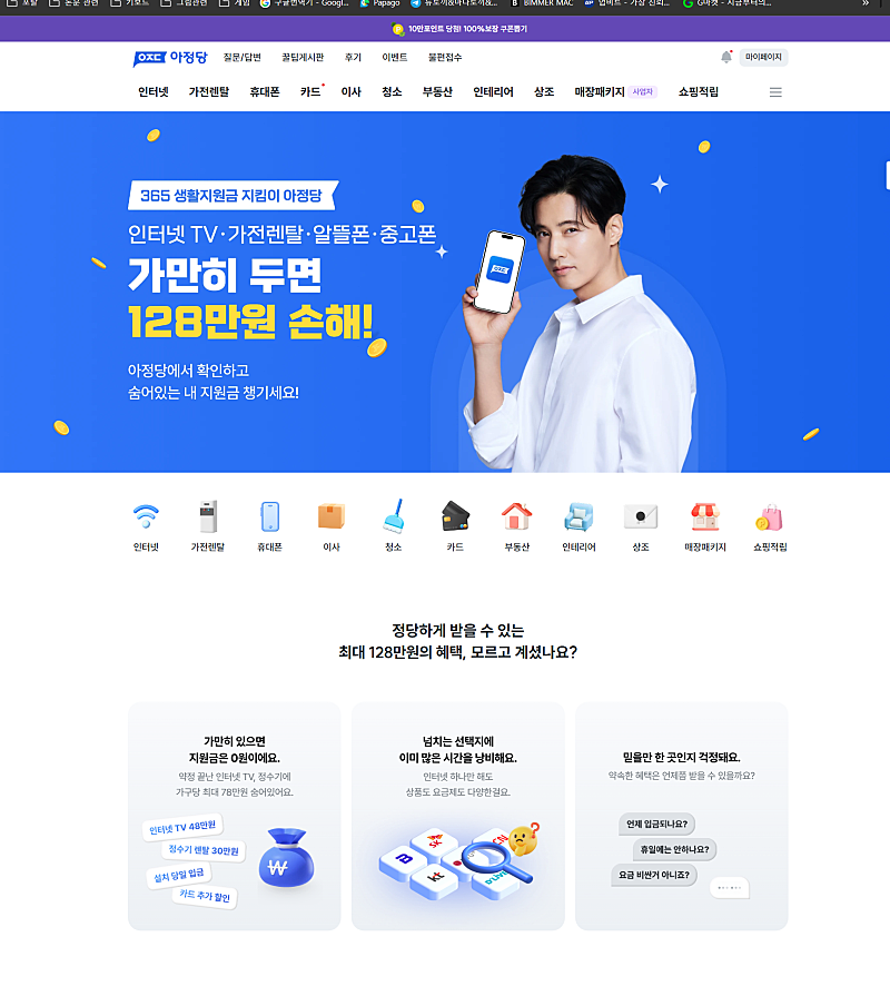 유튜브에서 광고 영상을 보고 가입하였습니다. 타업체와 비교후 아정당을 선택하게 되었습니다.