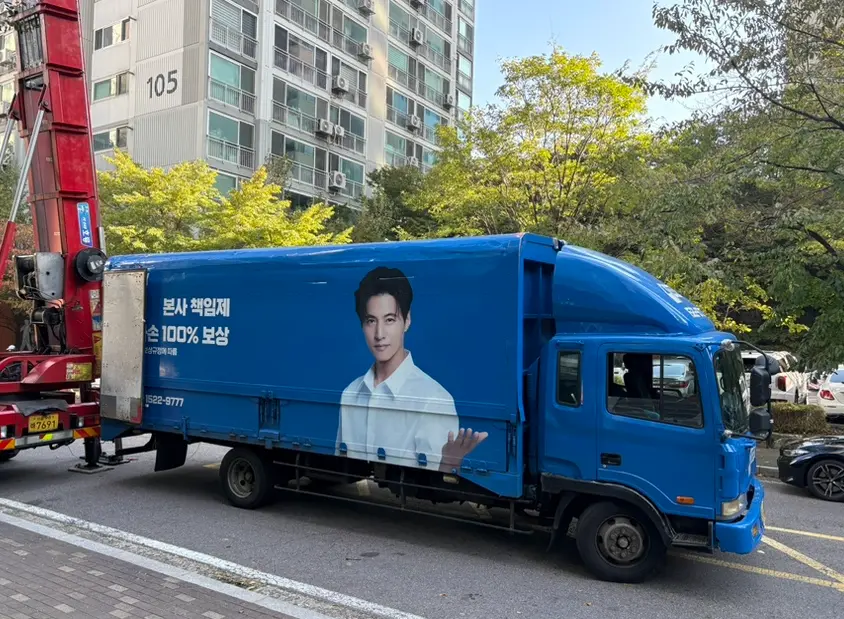 아정당 로고가 박힌 박스들과 원빈이 크게 박혀있는 짐차