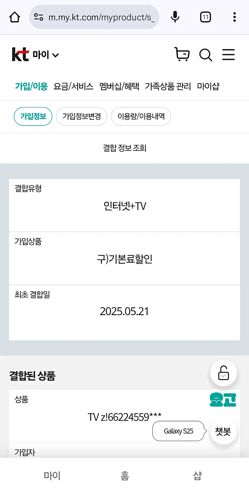 * 요금 상품 : SKB 500mb / B티비 / 기가지니a 셋탑