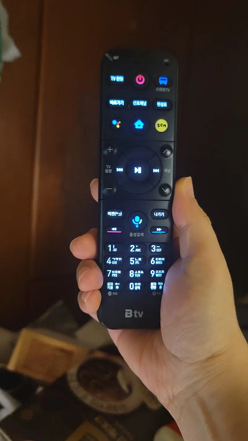 리모콘 들면 불빛 켜짐. 버튼 느낌 최고~