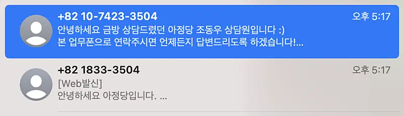 신청 후 거의 바로 전화가 와서 유선으로 간단한 상담을 진행했습니다.