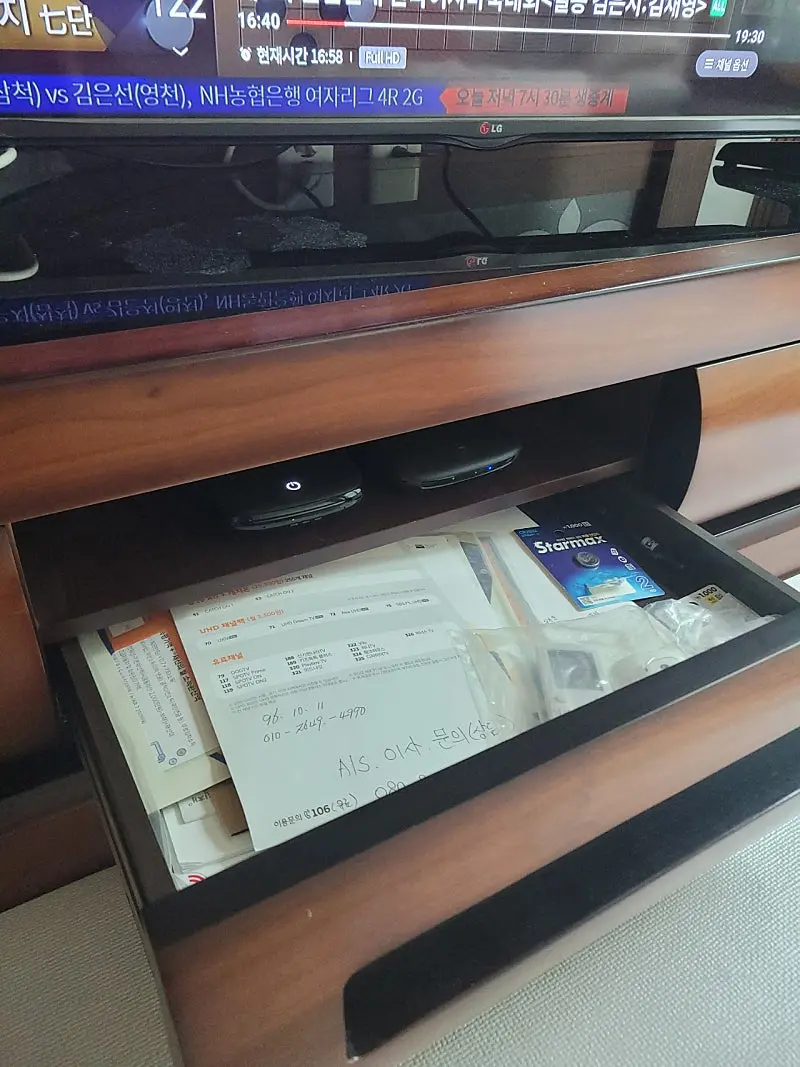 세톱박스는 티비장 아래에 깔끔하게 정리해서 설치해 주셨습니다.