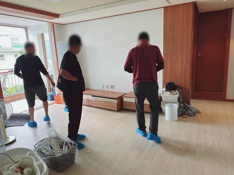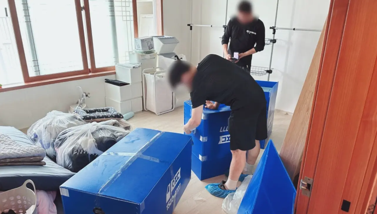 남자 분들은 대형 가구부터 전자 제품을 꼼꼼하게 포장해주셨습니다.